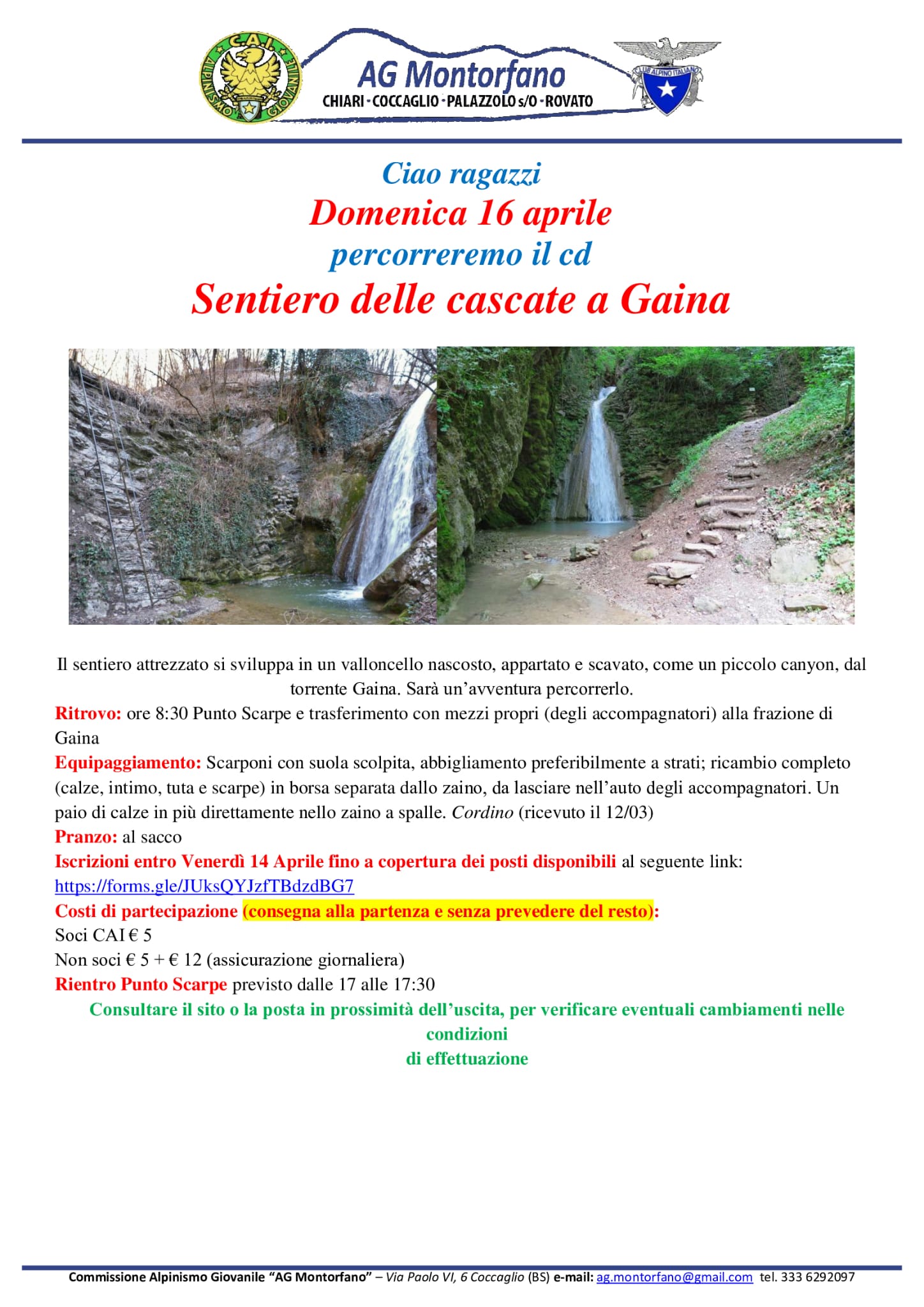 Alpinismo Giovanile – Sentiero delle Cascate a Gaina – 16 Aprile