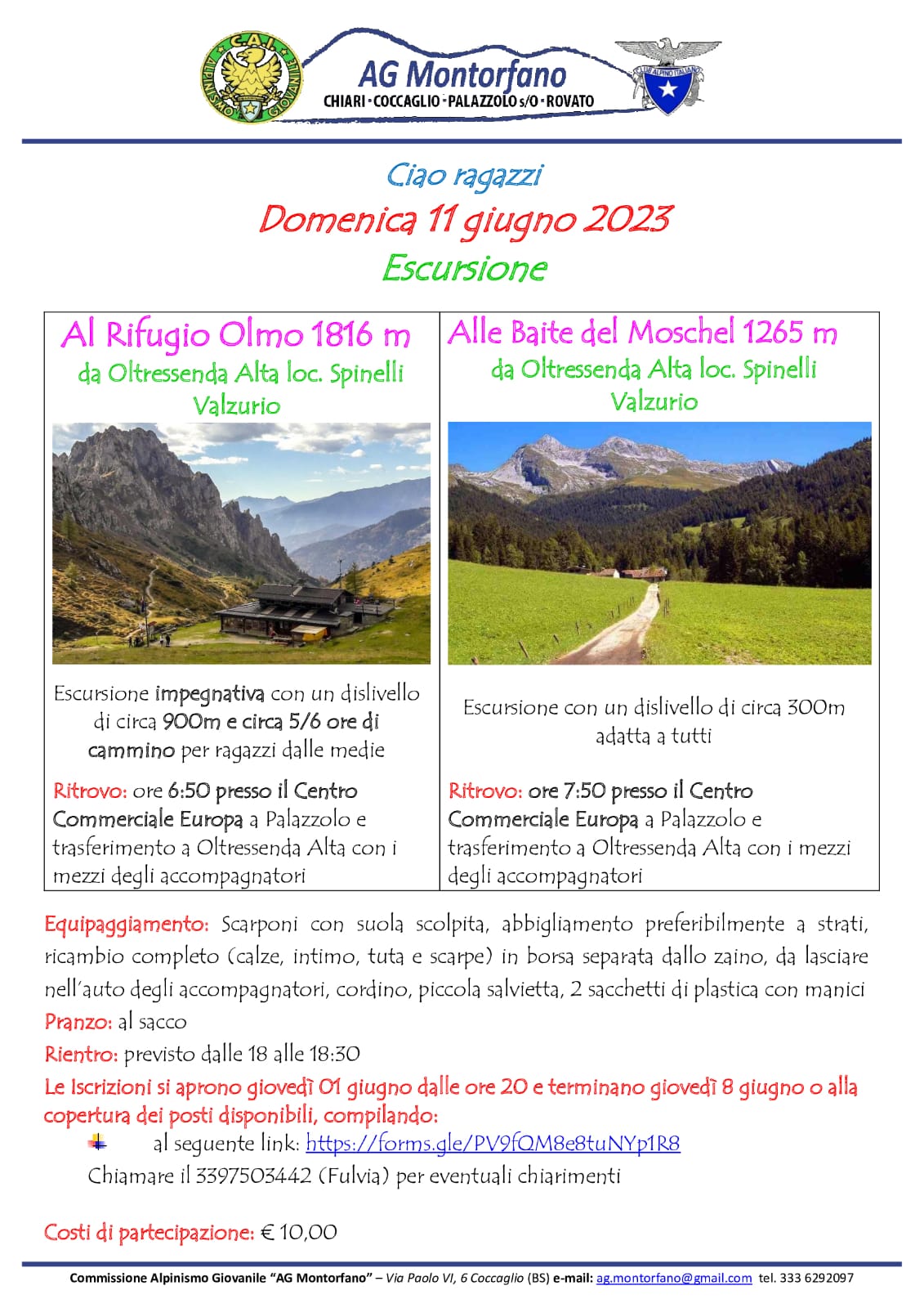 AG MONTORFANO – ESCURSIONE AL RIFUGIO OLMO E BAITE DI MOSCHEL – 11 GIUGNO