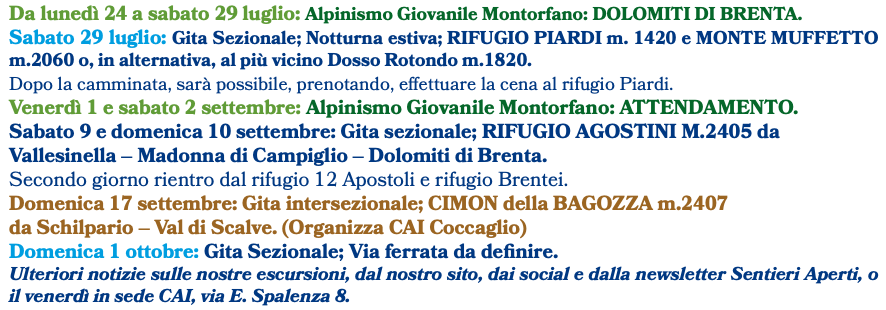 I principali articoli di questa newsletter saranno poi editi sulla storica rivista periodica Il Monte Orfano che, per il socio che lo desidera, potrà continuare a ricevere comodamente a casa in formato cartaceo.