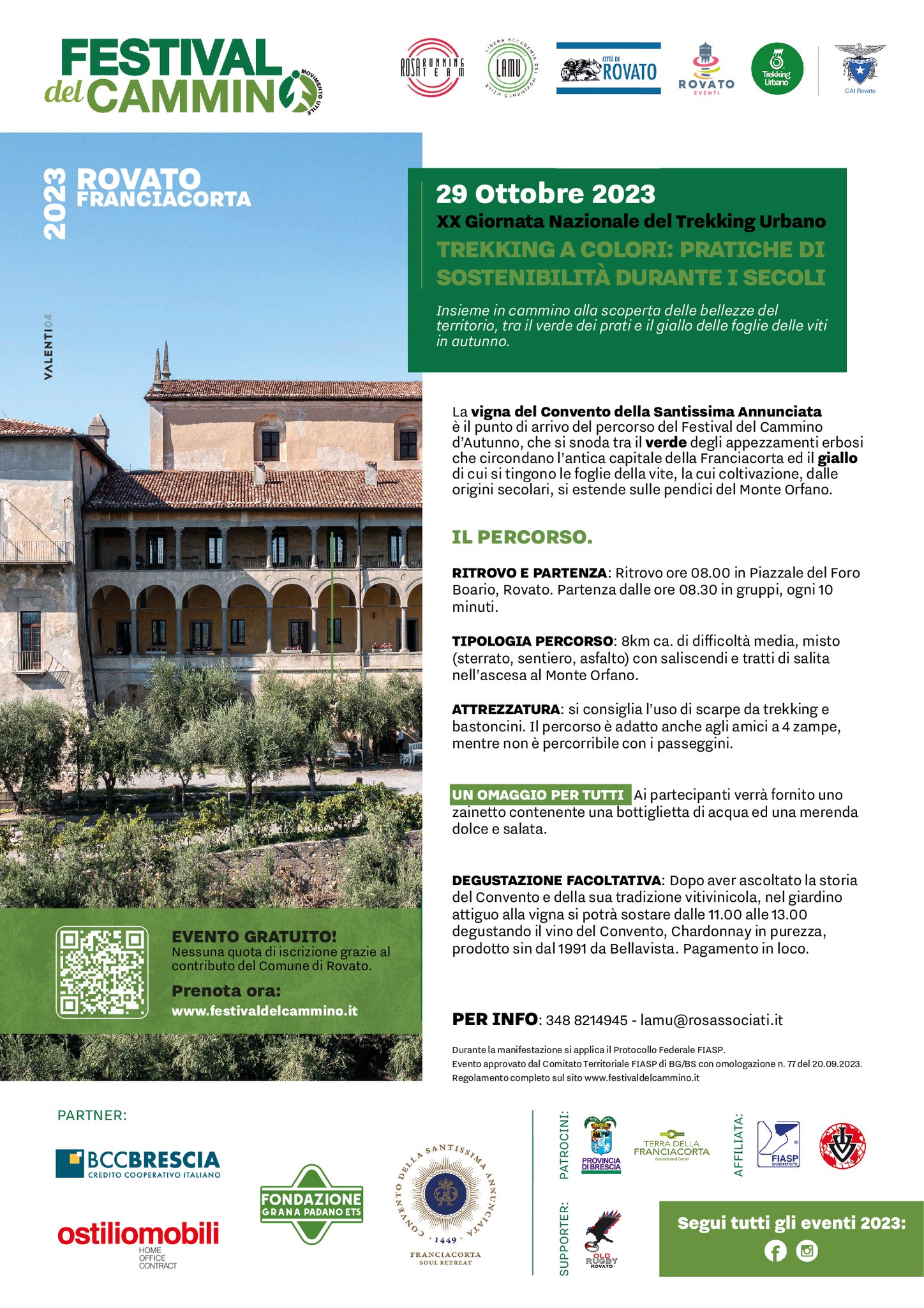 FESTIVAL DEL CAMMINO: XX GIORNATA NAZIONALE DEL TREKKING URBANO – ROVATO 29 OTTOBRE