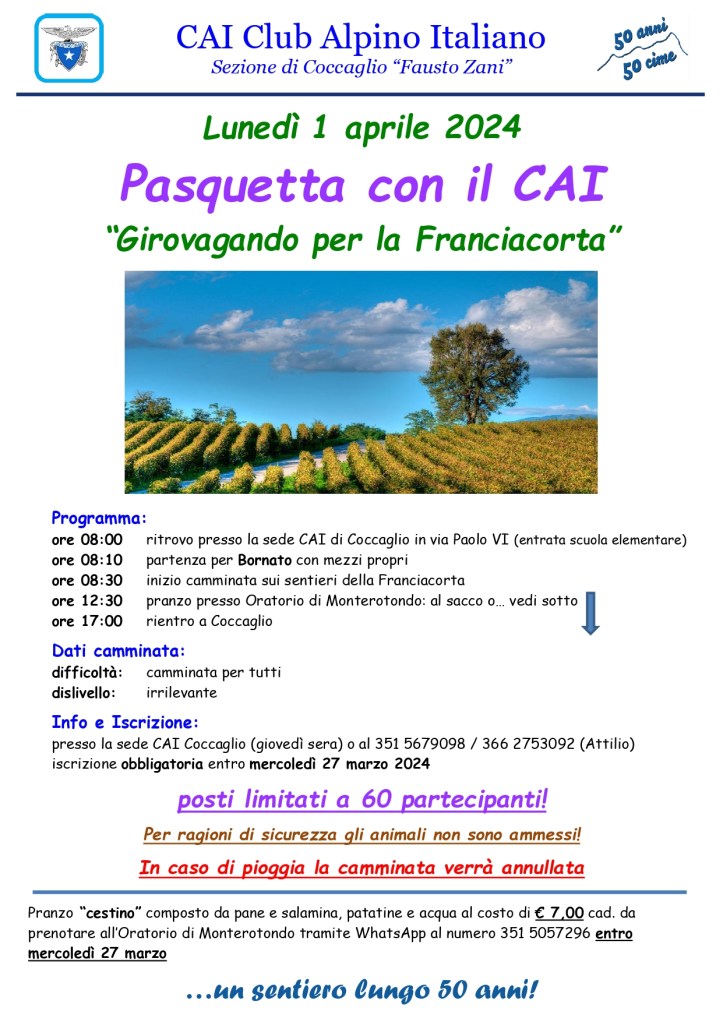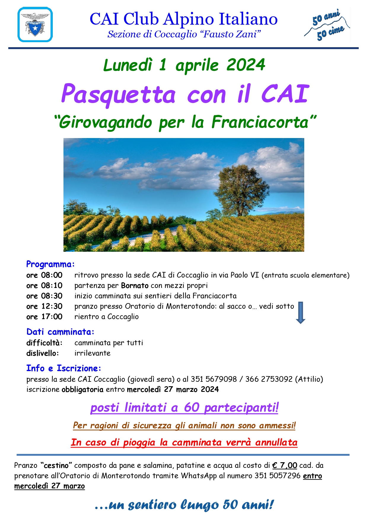 CAI Coccaglio – Pasquetta con il CAI, girovagando in Franciacorta – 1 Aprile