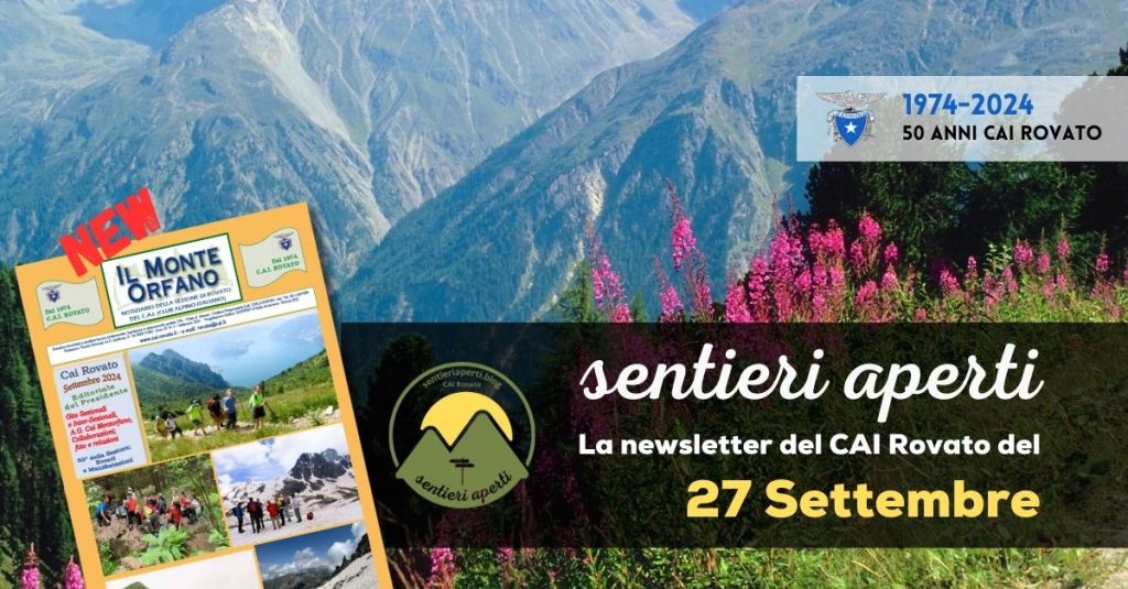 Sentieri Aperti è la newsletter della sezione CAI di Rovato e nasce con l’intento di fornire news, attività, eventi e appuntamenti sulla vita associativa di sezione, dei suoi partner ma anche del mondo della montagna in senso più ampio.