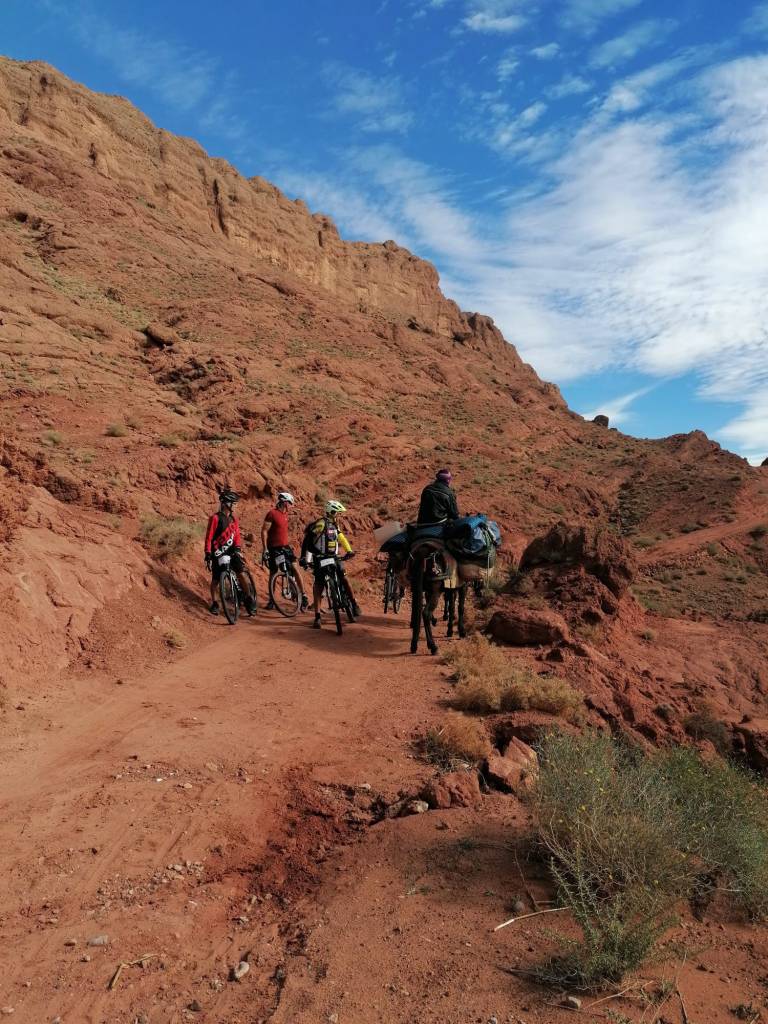 E poi scampoli di umanità nelle oasi, tratti di civiltà moderna per cultura e straordinariamente antica nel ritmo del vivere. Mezzi di lavoro arcaici ed immutati seppure a poche centinaia di km da qualche città brulicante. Un rapporto con la montagna fondamentalmente lontano da quello che si mostra nelle nostre valli. Forse fatalismo o innata remissività, ma una cosa in particolare, a tal proposito, è rimasta nel cuore: la gioiosa accoglienza dei bambini, che a gruppetti compaiono dal nulla, tra le rocce più aspre, per avvicinarsi al sentiero come alla pista un po’ più battuta, e salutare da vicino cinque biciclette che, chissà perché, dovevano passare proprio da lì, in quel momento.