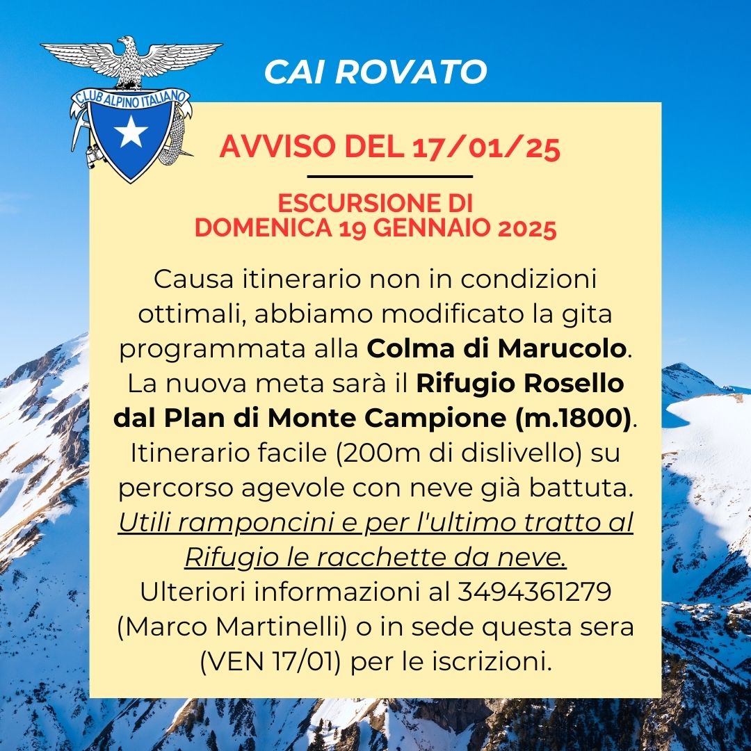 Colma del Marucolo (mt. 1857) – avviso di cambio itinerario per Domenica 19 Gennaio