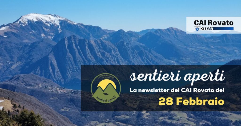 Sentieri Aperti è la newsletter della sezione CAI di Rovato e nasce con l’intento di fornire news, attività, eventi e appuntamenti sulla vita associativa di sezione, dei suoi partner ma anche del mondo della montagna in senso più ampio.