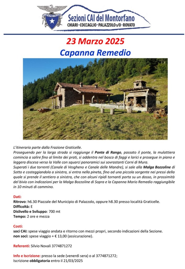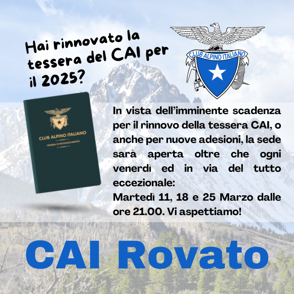 PER ISCRIZIONI CONTATTA LA SEDE CAI DI ROVATO