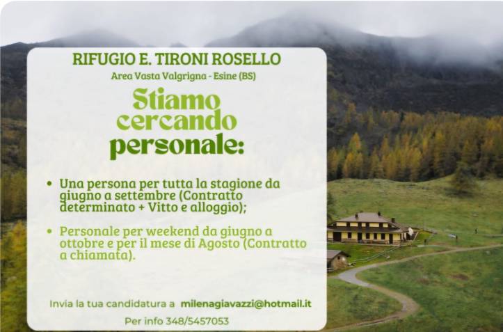 AAA Cercasi Personale – Rifugio E. Tironi Rosello – Esine