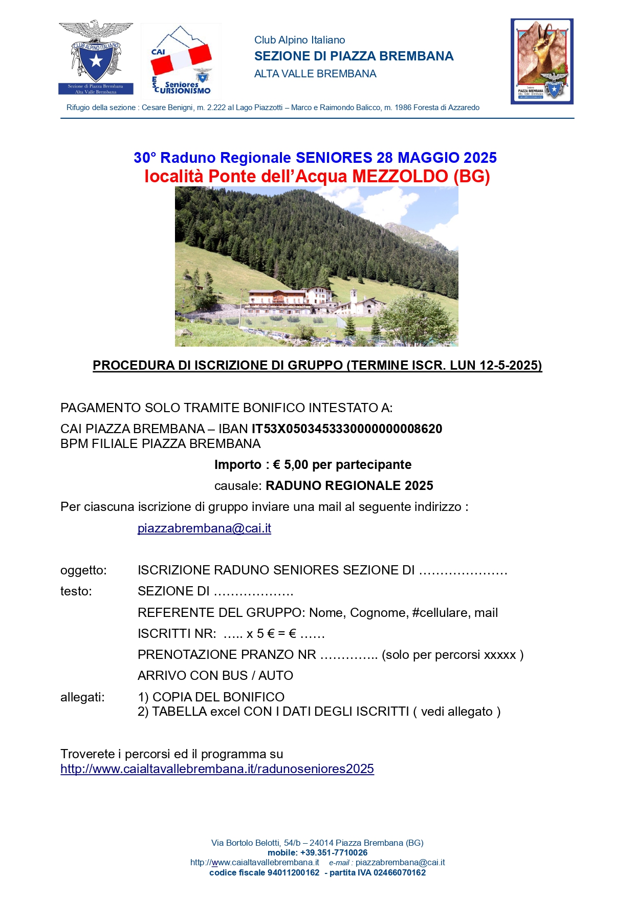 Iscrizioni anche in sede CAI Rovato che sarà aperta, eccezionalmente, giovedì 24 aprile anziché venerdì 25.
