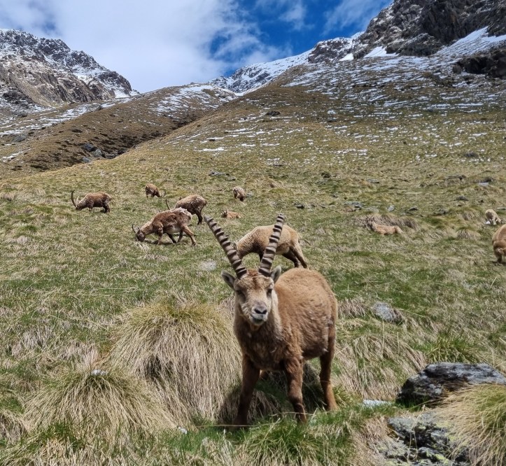 Oggi gli stambecchi di Valzaroten, ad un certo punto, hanno stimato che ci fossimo troppo avvicinati al branco e gli è bastato il loro fischio gutturale chinando il capo per farci allontanare.
