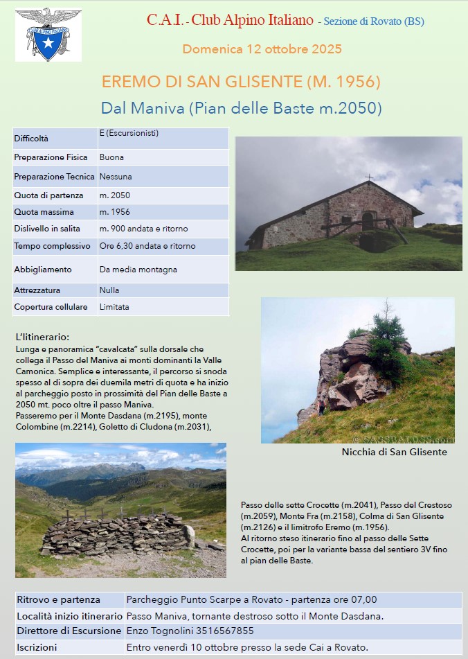 Eremo di San Glisente (1956 mt) dal Maniva, Pian delle Baste (2050 mt) – Domenica 12 Ottobre 2025