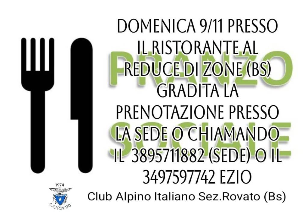 Pranzo Sociale CAI Rovato – Domenica 9 Novembre