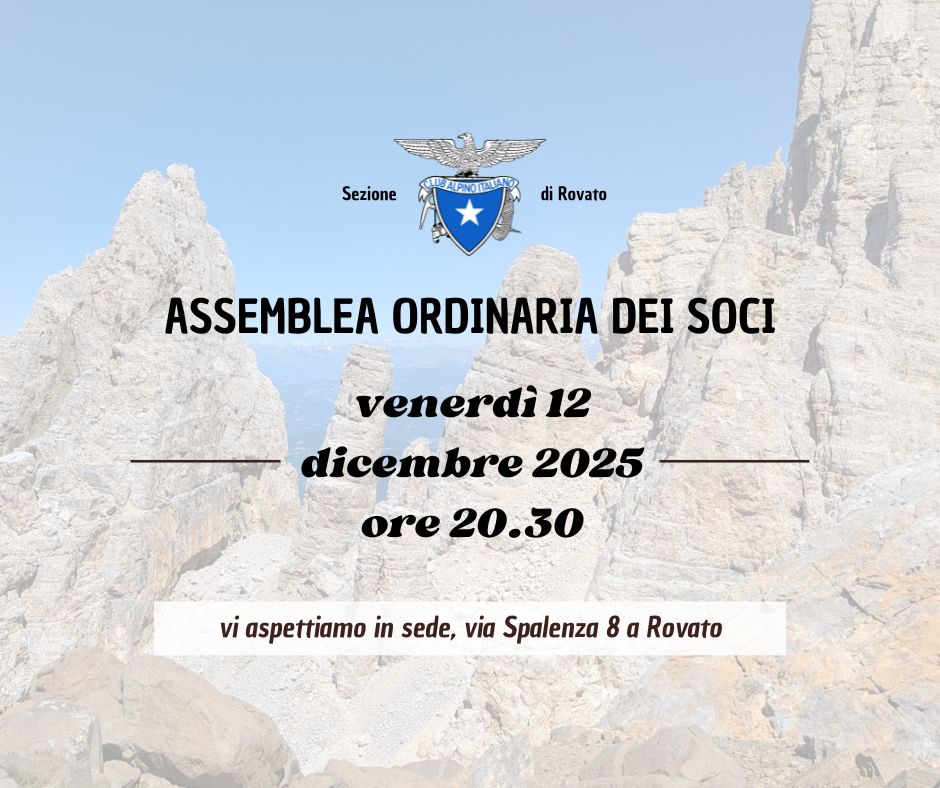 Assemblea Ordinaria dei Soci – Venerdì 12 dicembre – sede CAI di Rovato