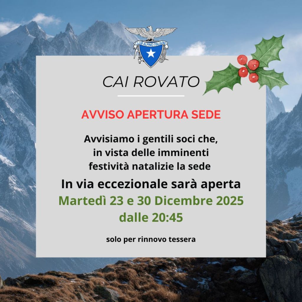 La sede sarà aperta martedì 23 e 30 dicembre dalle 20.45