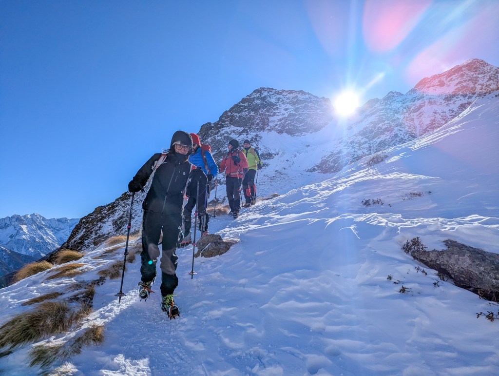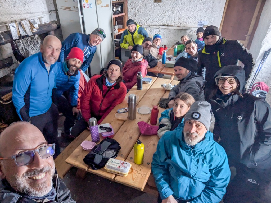 Appena terminato il mio tramezzino, erano già tutti in piedi pronti per rientrare dallo stesso percorso. Varcata la porta del bivacco e tornata all’aria aperta, sono stata colpita da un vento gelido… e allora via, di corsa verso il basso!