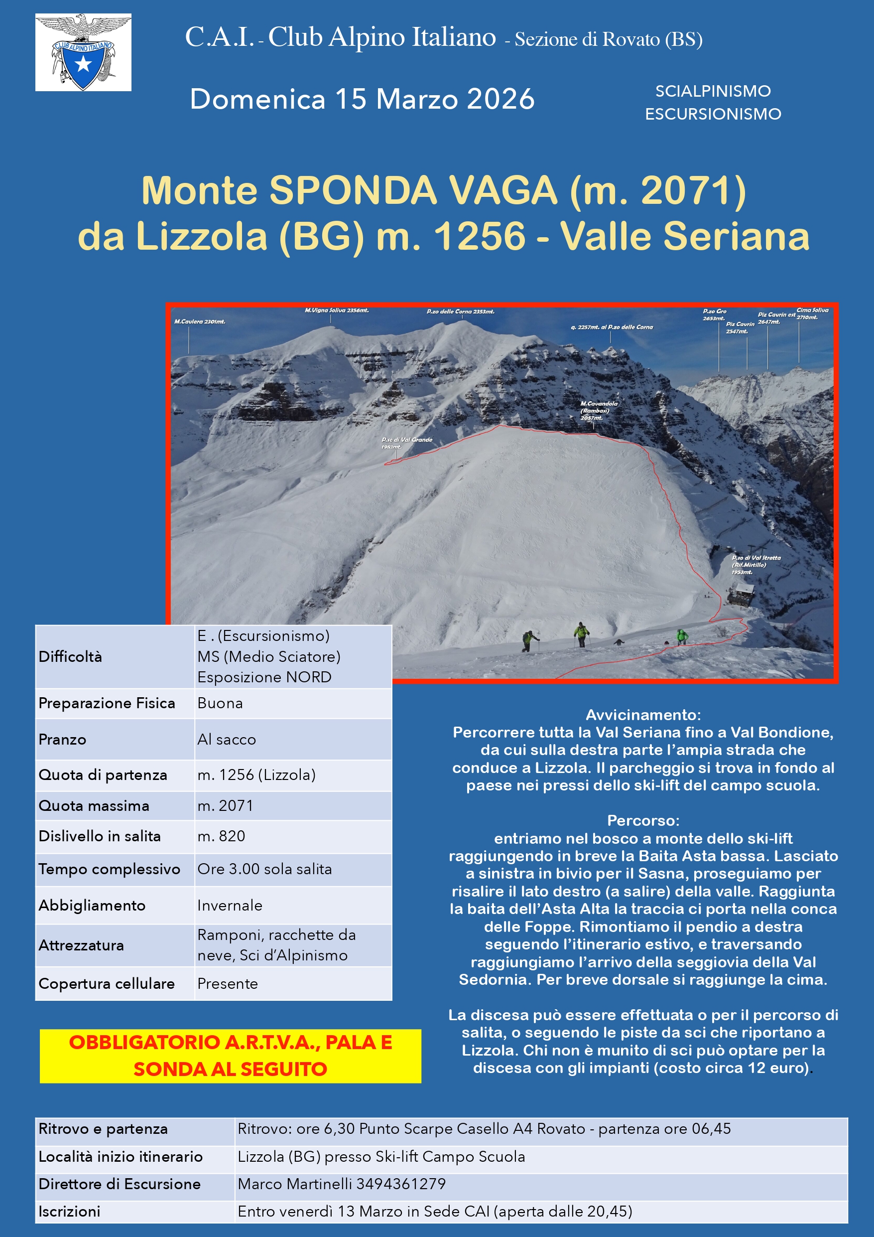 Monte Sponda Vaga (mt. 2071), da Lizzola – Domenica 15 Marzo