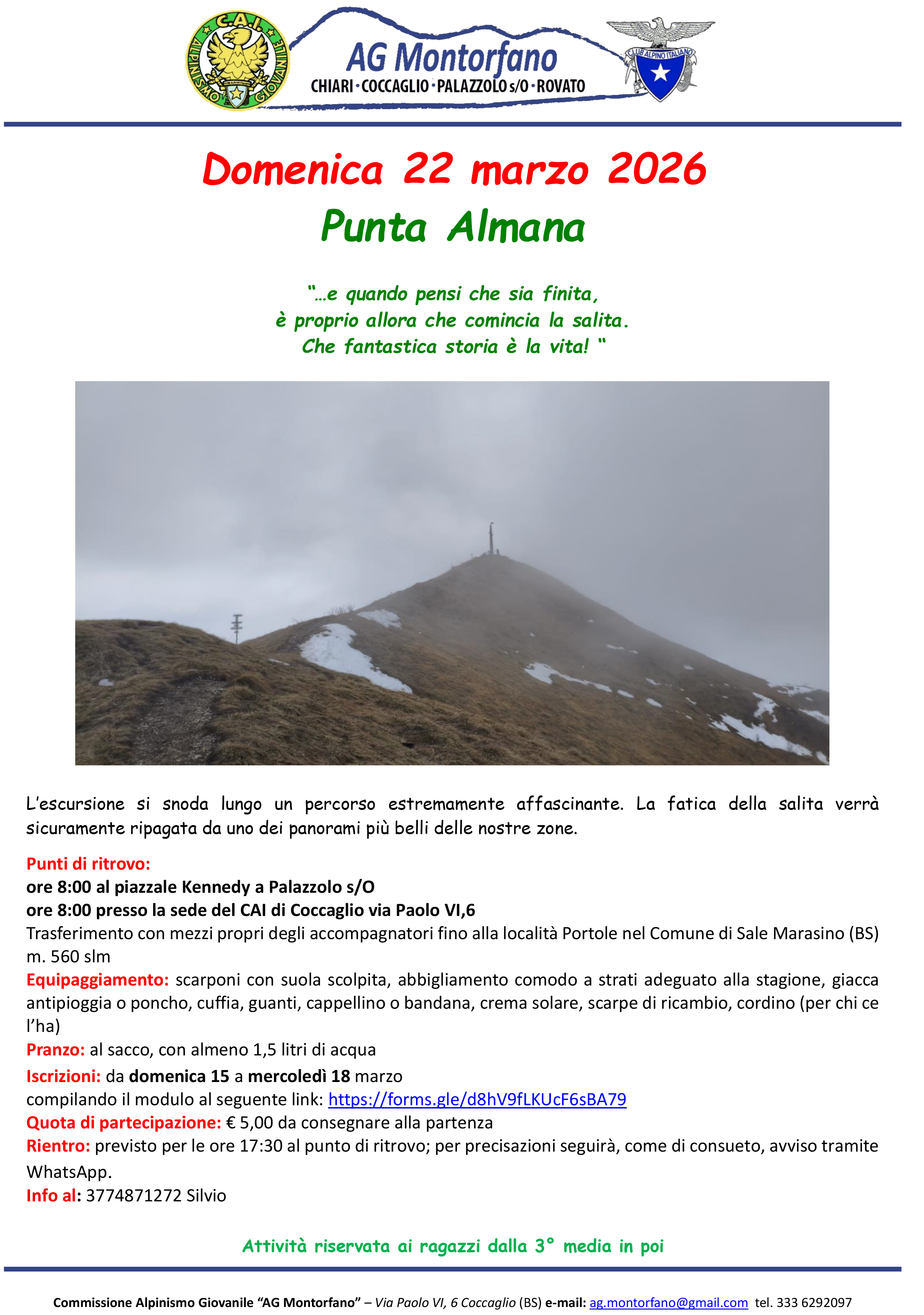 ALPINISMO GIOVANILE: DOMENICA 22 MARZO – PUNTA ALMANA