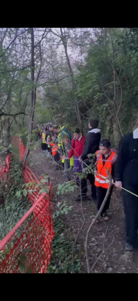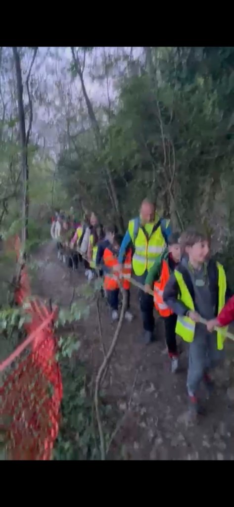 Il gruppo è partito dal santuario di Santo Stefano e, dopo il primo tratto sulla strada che sale verso il Convento dell’Annunciata, ha intrapreso in cordata il percorso vita.