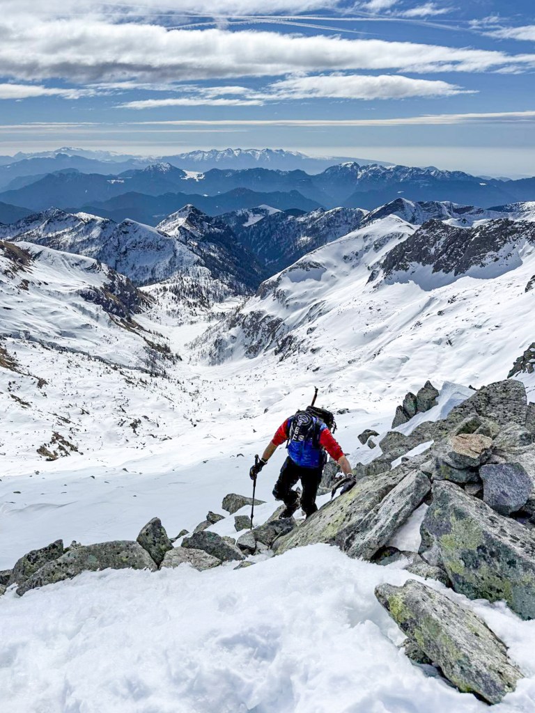 Ancora un po’ di pazienza con i rampant per maggior sicurezza ed agio sul primo tratto ripido e poi la via alla cima si svolge con quella serenità che deriva dell’armonia tra passo e respiro… ognuno con il proprio passo e il proprio respiro.