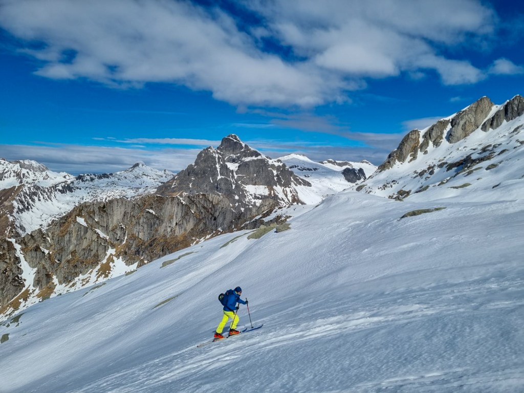 Sabato 4 aprile non era facile individuare la destinazione per una gita Skyalp: manti nevosi difficili, ventosità recente, temperature alternanti…